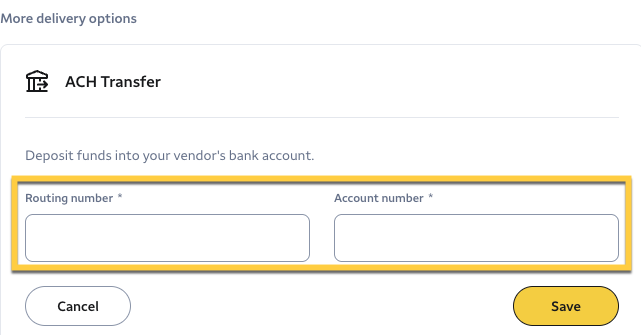 Next, add the routing number and the account number for the vendor.