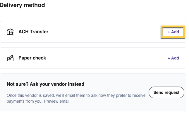 Next to ACH transfer, select +Add.