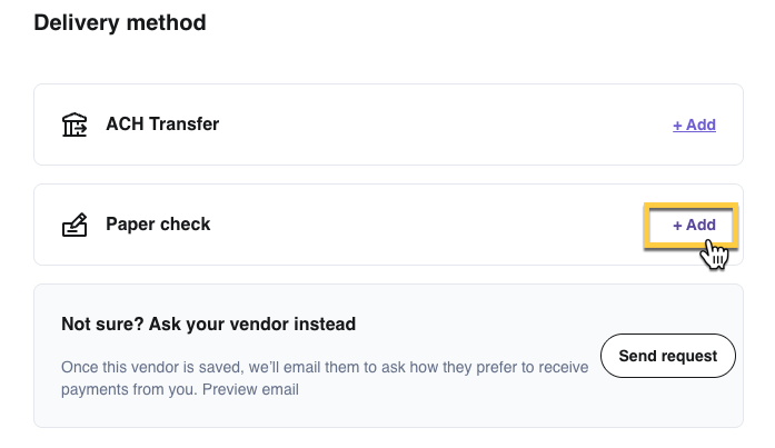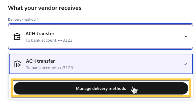 If paper check isn't a listed delivery method, you will need to select Manage delivery methods to add it.