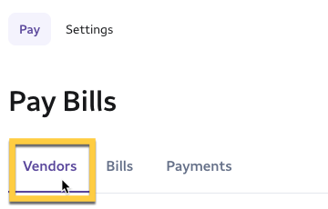 1- In your Bill Manager Dashboard, select the Vendors Tab.