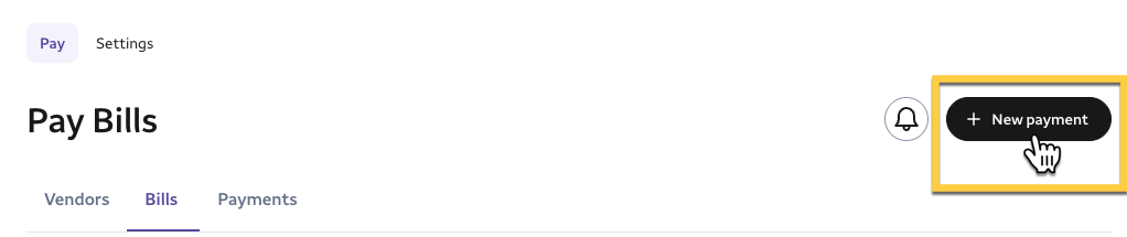 1- In your Bill Manager Dashboard, select the + New Payment button at the top of your dashboard. This will open the Pay page.