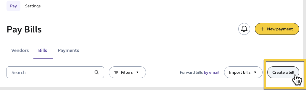 2- Once in the Bills tab, select Create a bill to open up a new bill.