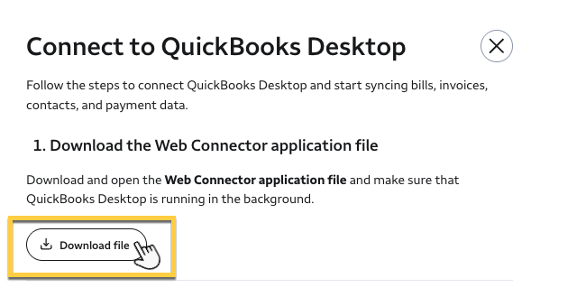 Step 1: Download the QuickBooks Web Connector application file in the Pay dashboard.