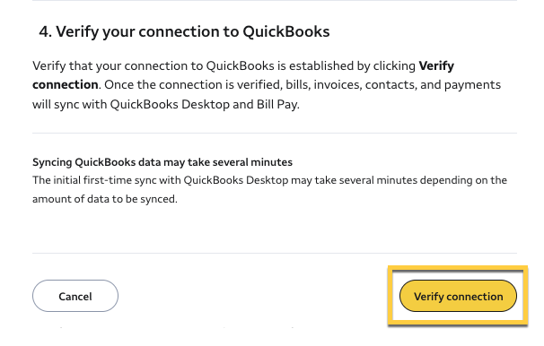 Step 4: Verify your connection to QuickBooks Desktop