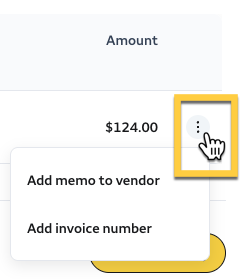 8- You can add a memo to the vendor or an invoice number by selecting the 3 dots on the right of the payment details.