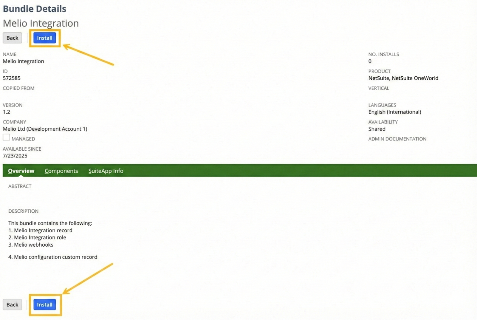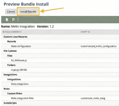 Once the bundle is installed, you need to assign the correct permissions and generate security tokens. The bundle automatically adds the Melio Integration Record and Melio Integration Role to your account.