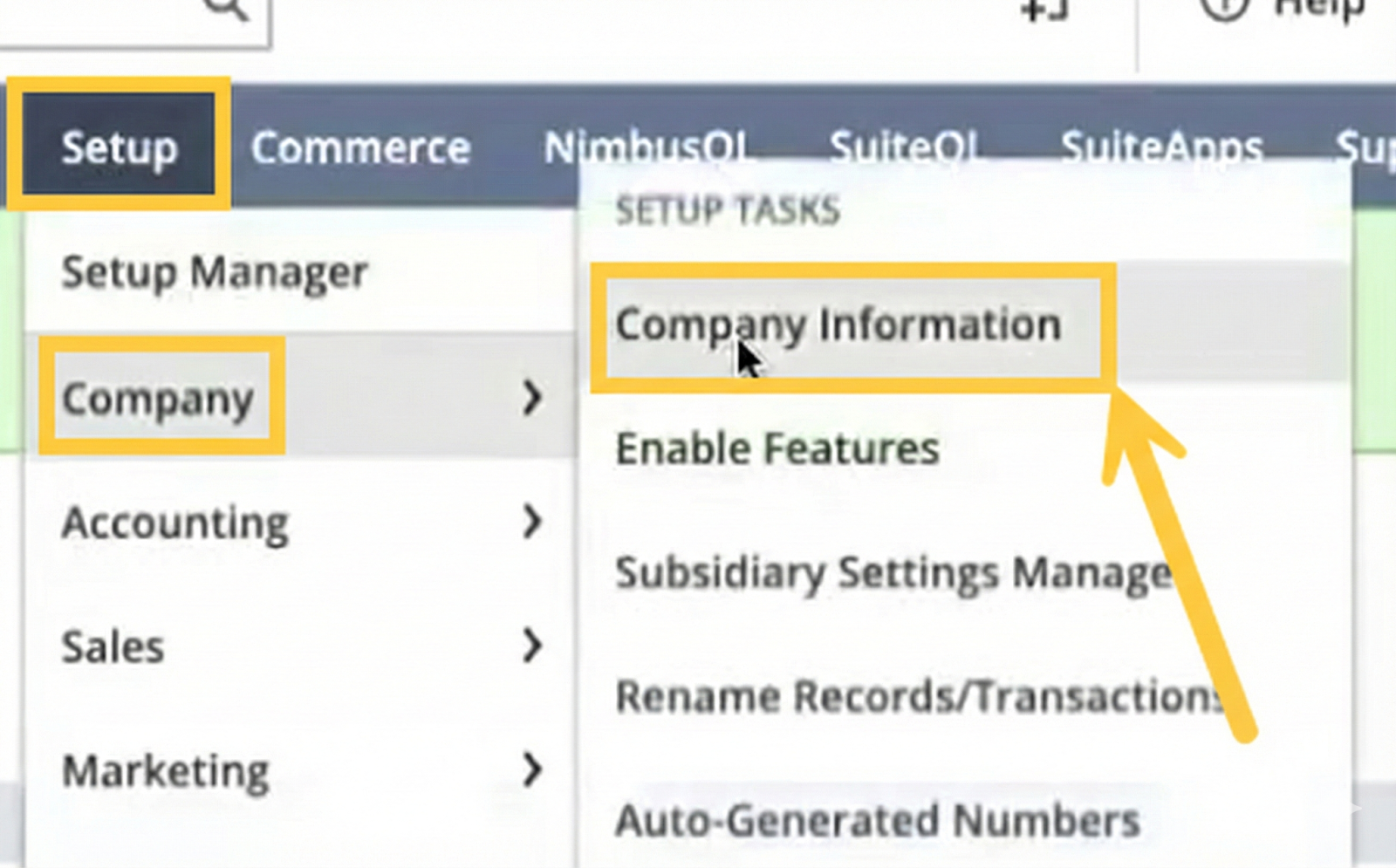 1 - In your NetSuite account, navigate to Setup -> Company -> Company Information.