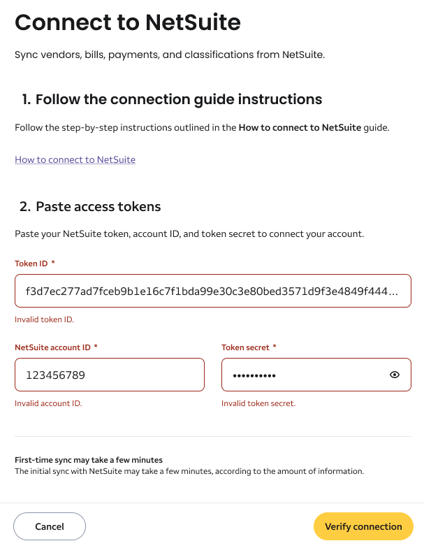 4 - Verify the connection as explained in Step 5: Connect Bill Manager and NetSuite.