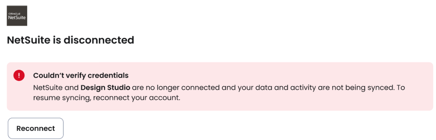 If you see an error message indicating your NetSuite account is disconnected, you must manually reconnect it.