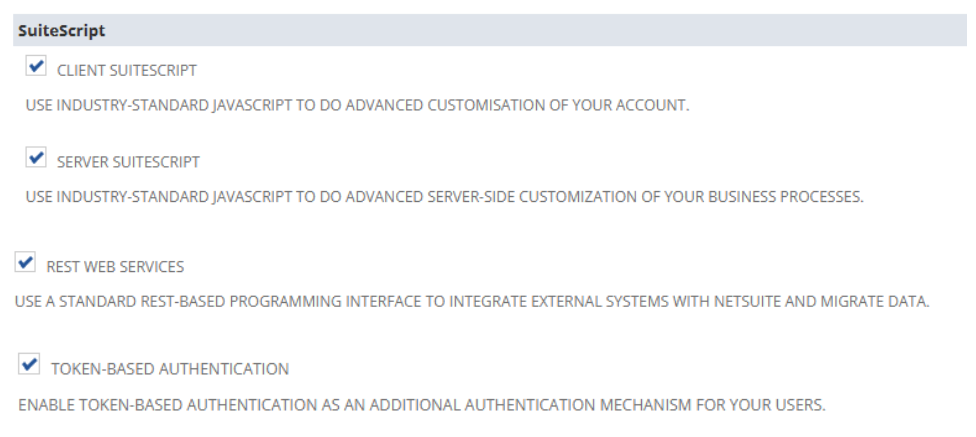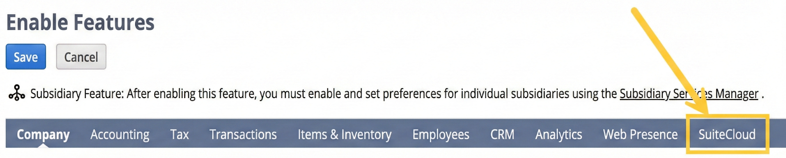 Before installing the integration, you must ensure specific SuiteCloud features are active to allow the connection.