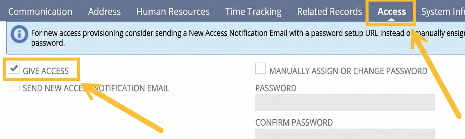3 - Go to the Access subtab and ensure Give Access is checked.