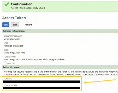 ❗Important: During this part of the connection, copy the Token ID and Token Secret immediately after you see them on the screen, and store them securely. These values are displayed only once and cannot be retrieved later.