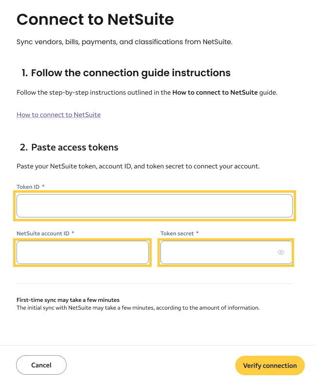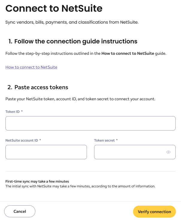 4 - Complete the connection by following Step 5: Connect Bill Manager and NetSuite.