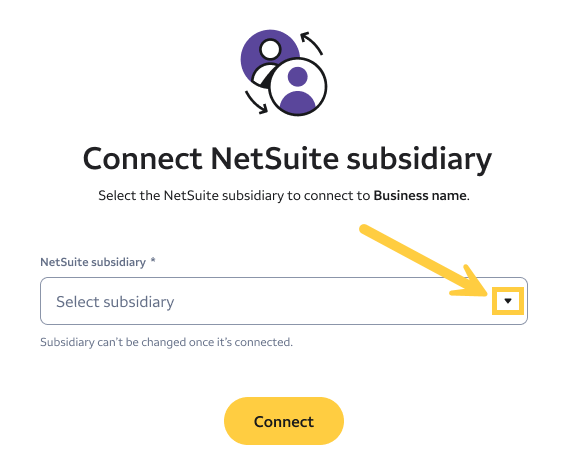 7 - Select the NetSuite subsidiary from the drop-down list. Then, select Connect.