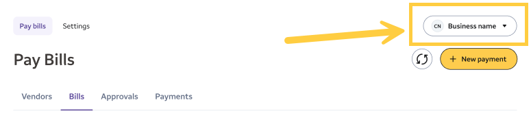 1 - In your Bill Manager account, click your company name in the top-right corner.