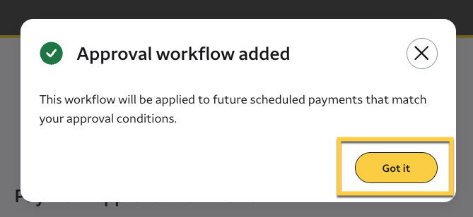 That's it! The new workflow will appear in the Payment approval workflows section. You can set up as many approval workflows as you need.